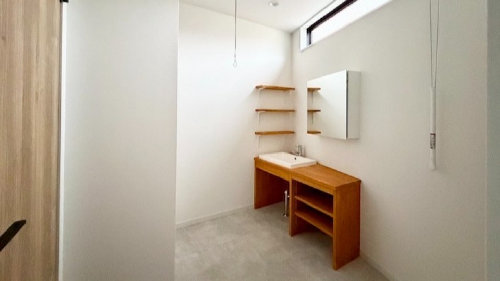 また空間の余白の取り方がうまく、一階の洋室や脱衣所の台形の形のお部屋も出っとスペースがありません。もはや、長方形のお部屋よりおしゃれに感じる造り。