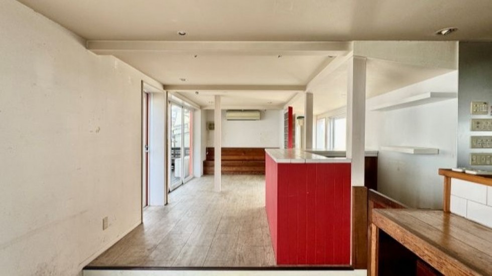 江ノ島電鉄「七里ヶ浜」駅の改札を出て徒歩30秒。今回の物件は1階が店舗、2階が住居またはセカンドハウスとして使える店舗兼用住宅です。観光地の立地を活かして民泊運用も可能。カウンターやベンチ、外デッキ、ガス栓、排水、トイレ、エアコンなどが残置され、ガスの引き込みも済んでいるため大きな工事をせずに開業できます。2階は居室2部屋と浴室・トイレのみ。キッチンや浴槽などの設置は相談可です。