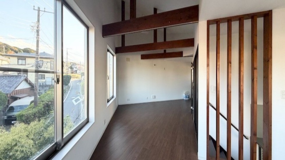 リビングの大きな窓から見える葉山らしい空が広く、緑いっぱいの景色。朝起きて階段を上がり、一番初めに見える景色がこれってだけで良い一日がスタートできそうだ。さらに、晴れた日の夕方には海へ散歩に出る人が多い葉山住民。日が落ちた後、空がピンクや真っ赤に染まるマジックアワー。それを徒歩10分で体感できる。この贅沢な時間だけでも、ここに住む意味があると思えるほどだ。