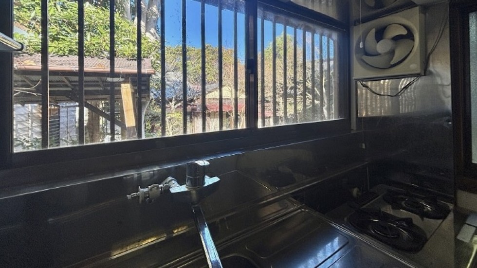 建物の外壁はもちろんのこと、室内は、床のフローリングや壁、天井、水回り、木の窓サッシ、スイッチパネルまで積み重ねた歴史と経年の変化を感じる。