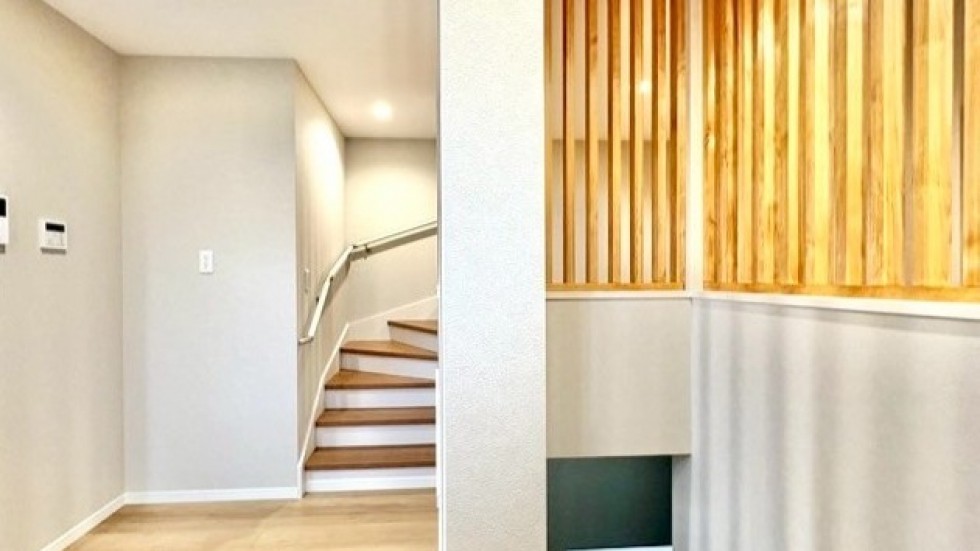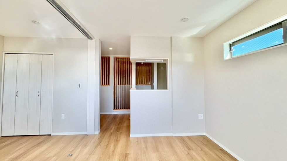 木製の縦格子をあしらったロフトは視線が抜け、圧迫感のないつくり。