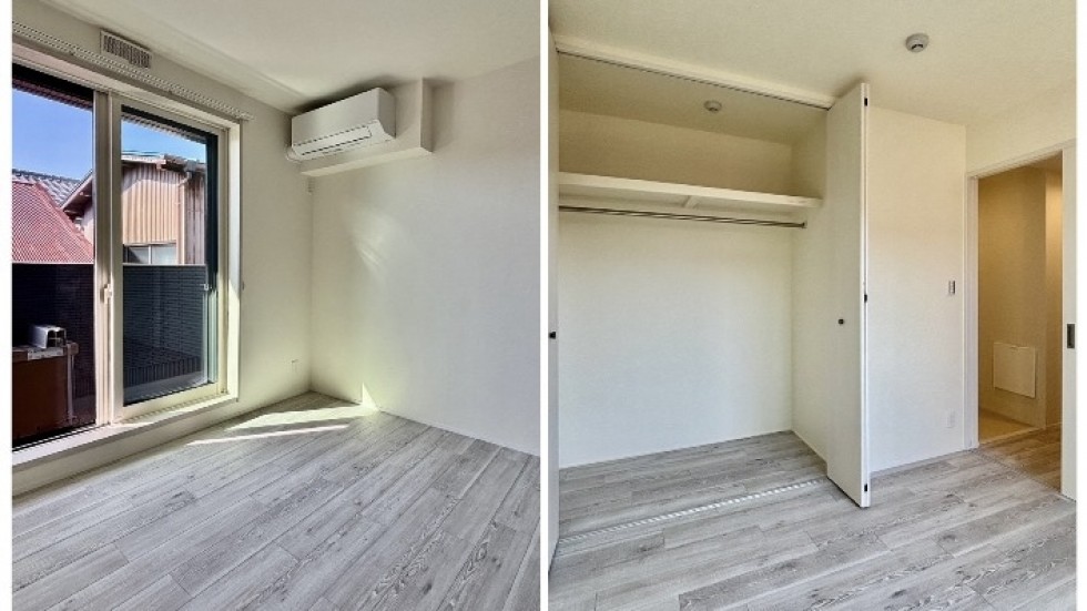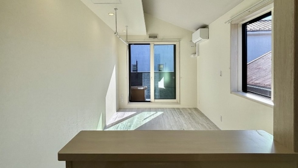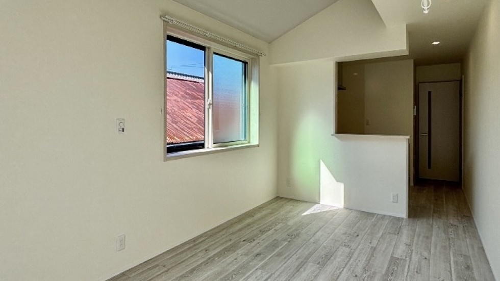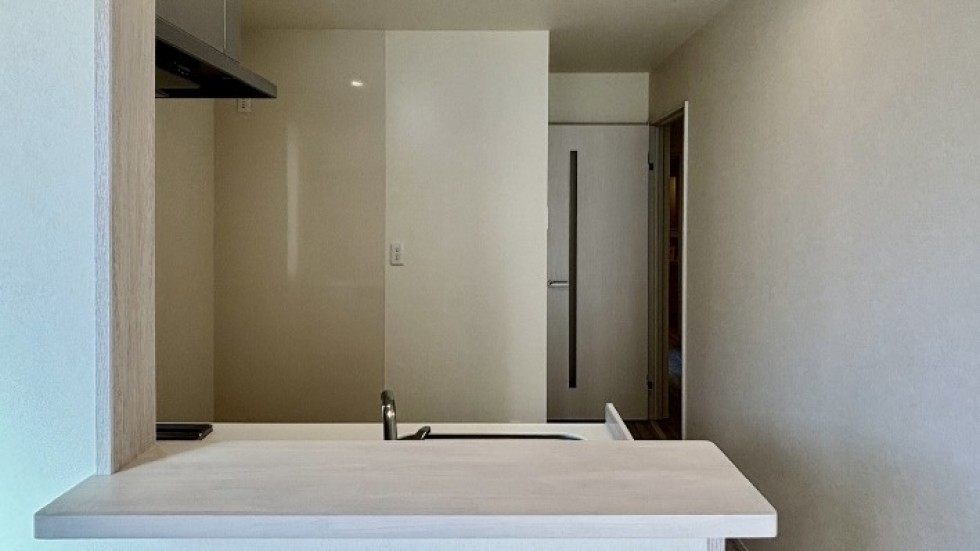 この部屋は2025年11月築の新築アパート。203号室は、各部屋が横に繋がっているため、夫婦で暮らしていても、一人の時間をつくりやすくて住心地よさそうです。2LDKのため1つは寝室にして、あと1つは、仕事部屋や趣味部屋を持てるのがいいところ。長谷に住むと両親や友人が遊びに来るようになるかもしれない。リビングのキッチン側にちょっと大きめのダイニングテーブルを置いて、バルコニー側にはソファとTVを置いても十分暮らせる空間。