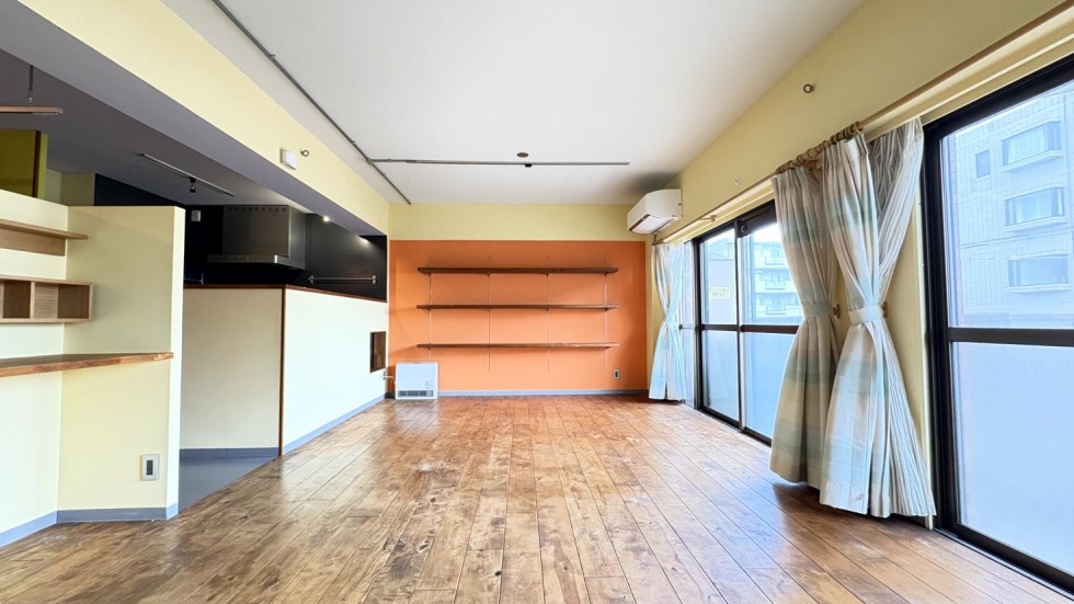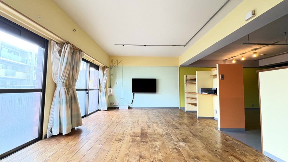 驚くべきは、部屋にほとんど「壁」がないこと。 潔いまでにスタジオ化したこの空間には、オレンジやミントグリーンといった遊び心のある色がさらっと散りばめられ、木のフローリングが光を受けていい感じに表情を変えてくれます。