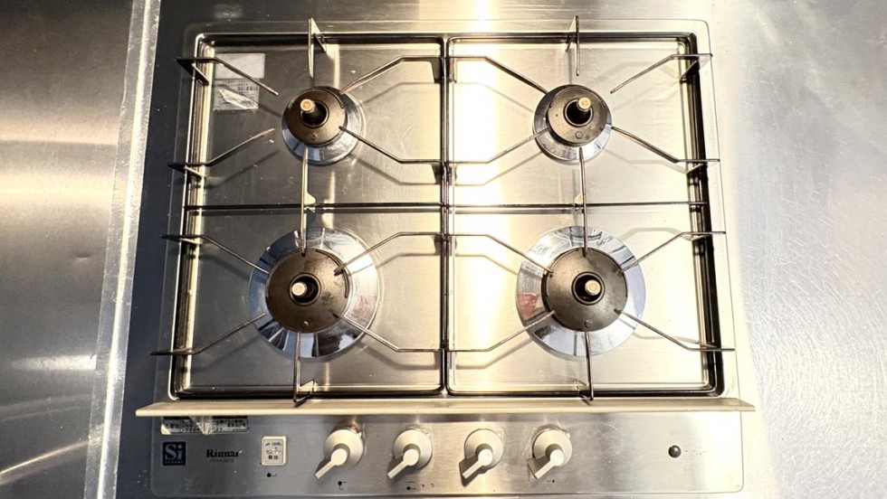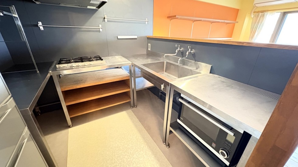 そして、この部屋の真の主役は、鈍い光を放つオールステンレスのL字型キッチン。本格的な4口コンロが鎮座するその佇まいは、まるでプロのワークステーションのよう。近くの魚屋で仕入れた地魚を抱えて帰り、ふたりで並んでキッチンに立つ。一人が魚を捌き、もう一人が隣のコンロでアクアパッツァやソテーを仕上げる。そんな共演を、この広々とした天板は余裕で受け止めてくれます。