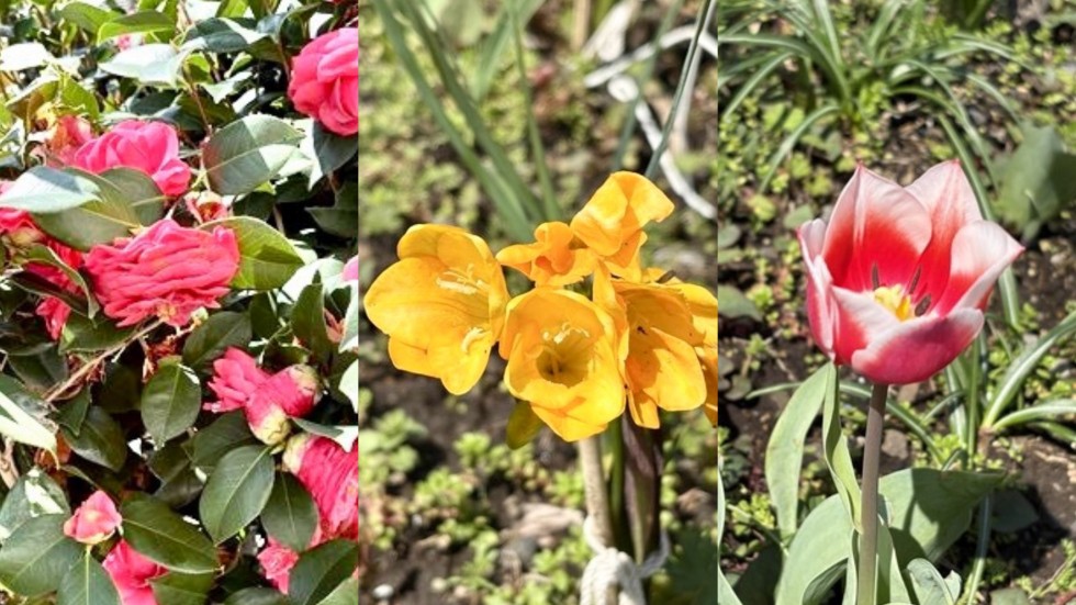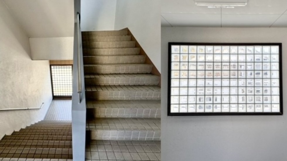 建物の管理の丁寧さも、好印象でした。木々や草花が敷地のあちこちにあって、春には椿、チューリップ、フリージアが顔を出します。階段の踊り場にはブロックガラスが使われていて、光が差し込むたびにきれいです。共用部の清潔さも相まって、オーナーさんの愛を感じました。