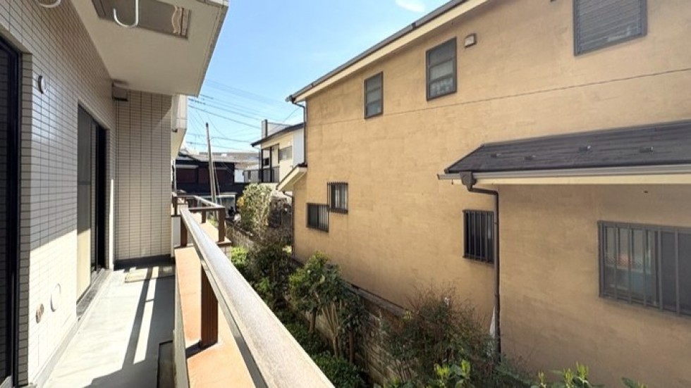 バルコニーから見える景色にも、ゆとりがあります。前の建物まで5メートルほど。敷地自体にも2メートルほどの余白があって、街中なのに息苦しさがない。取材中、鳥の声が聞こえました。鎌倉駅から徒歩10分でこれは、なかなかです。