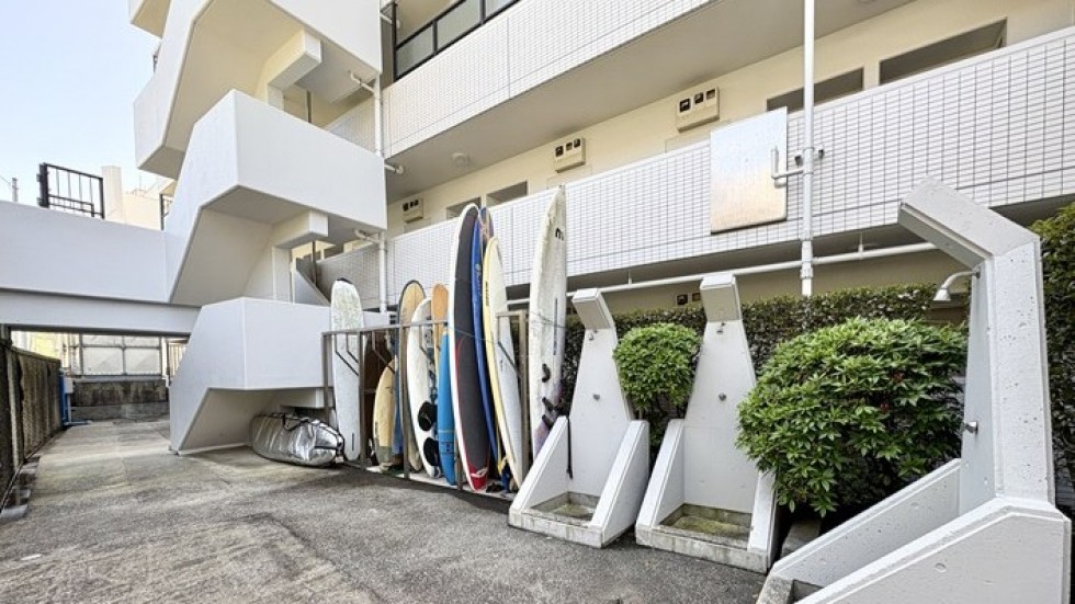 マンションにはサーフボード置き場と、3つのシャワーブースも完備。サーフィンが趣味の方には、まさに理想的な環境です。サーフスポットとしては秋谷海岸や長者ヶ崎がおすすめ。サーフから帰ってシャワーを浴びて、部屋でぐったりするまでが完璧すぎるルーティンです。