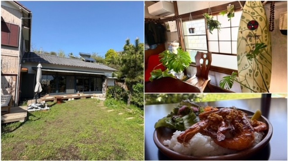 そして忘れてはならないのが、徒歩1分のハワイアンカフェ「plus aloha cafe」の存在。古民家とハワイアンという一見ミスマッチな組み合わせが、なぜか絶妙にハマる大人気カフェです。素敵なご夫婦が丁寧な接客でもてなしてくれて、お庭もとびきり素敵。ランチのガーリックシュリンプは有頭エビがとにかくデカくて美味しい。スパークリングワインやビールもあるので、歩いて来られる人だけの特権、「ガーリックシュリンプ+ビール」を心ゆくまでどうぞ。