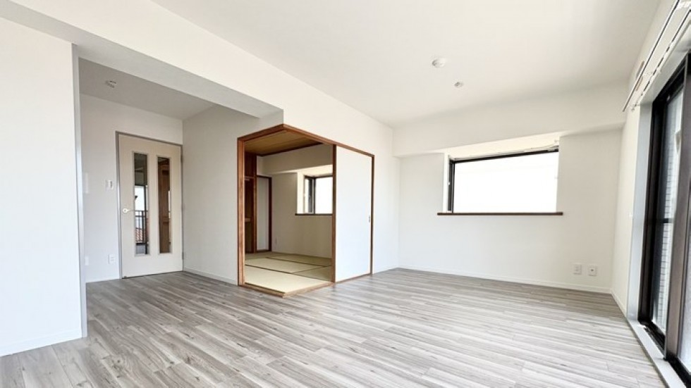 リビングは明るくて広くて、フローリングがきれい。その一角に続く6畳の和室は、リビングからも廊下からも出入りできる2WAY仕様。お昼寝するも良し、書斎にするも良し。畳の上でゴロゴロする幸福、久しぶりに味わってみてはどうでしょう。