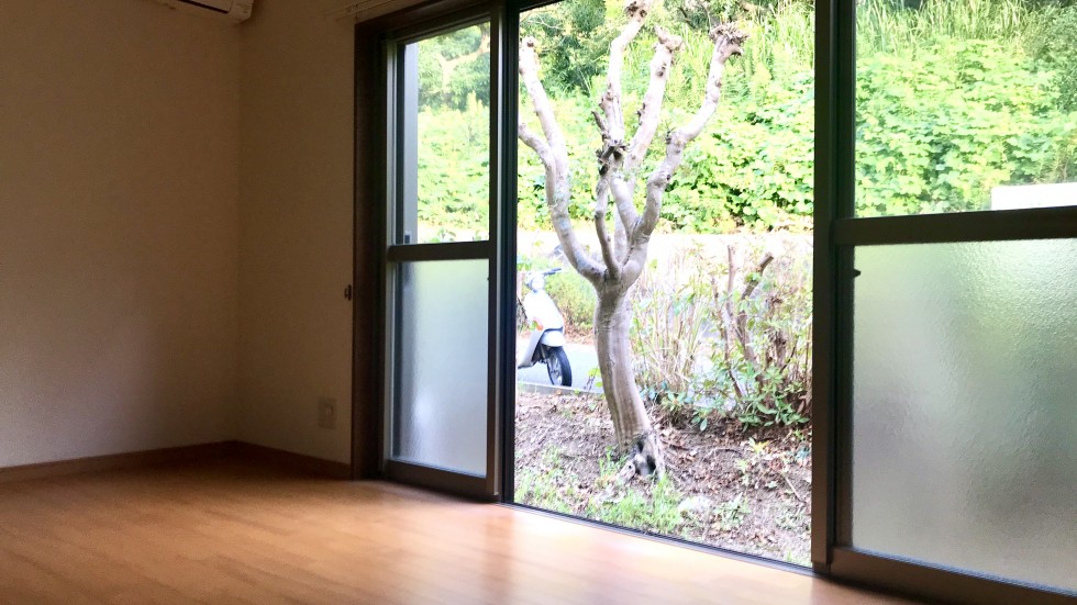 - バス・トイレ別、シャワー、トイレ、ガスコンロ可、室内洗濯機置場、クローゼット、都市ガス、エアコン、専用庭、人感センサー付照明、駐車場:なし