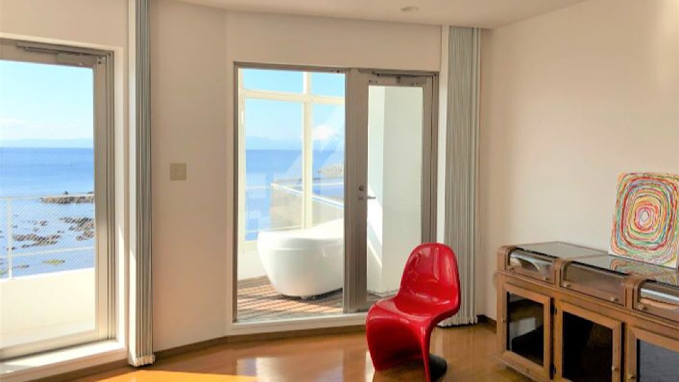 - プロパンガス、エレベーター無し、浴室無し(海正面の広いバルコニーにバスタブとシャワーあり)、収納家具、イス、ソファ、テーブル、アート、ブラインド ※駐車場1台付き(無料) ただし、専用ではなく、他の住人の方と声の掛け合いの上、ローテーション利用 ※屋上・海側の庭はオーナー専有部分のため立入不可 ※不定期で住人同士のイベントがあるため、交流を楽しめる方歓迎 ※ペット相談可 (敷金+1ヶ月・解約時償却) ※残置物:エアコン(洋室1台)、ミニ冷蔵庫(キッチン) ※浴室室内になし(外のバスタブとシャワーをご利用ください) ※洗濯機置場なし(近くのコインランドリーをご利用ください)